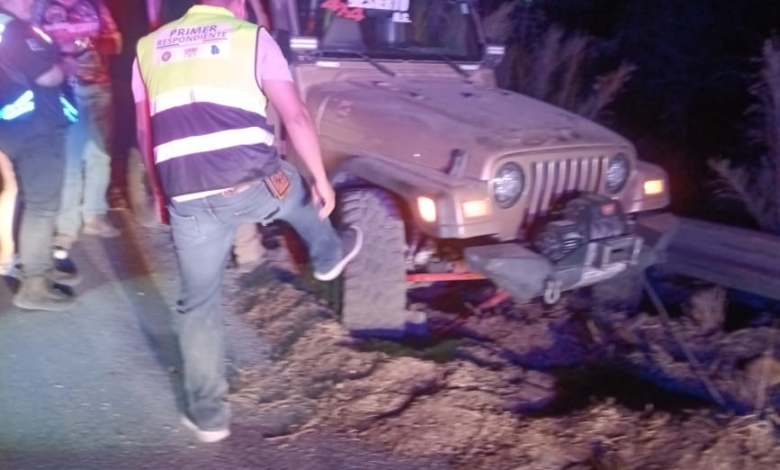 La madrugada de este lunes, primeros respondientes voluntarios del Grupo Emergencias Regionales acudieron a un accidente vehicular en la carretera federal número 45, a la altura del rancho El Cacahuate, donde un vehículo Jeep 4×4 sufrió una salida de camino después de que uno de sus neumáticos se pinchó, lo que provocó que el conductor perdiera el control del volante y se impactara contra la valla metálica de contención.