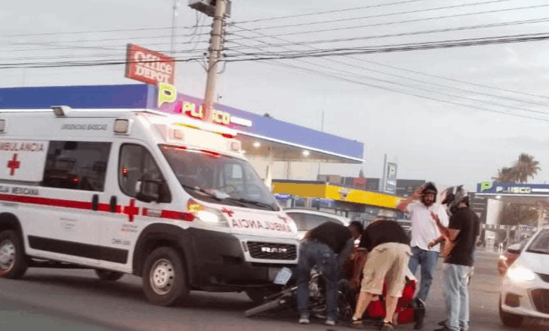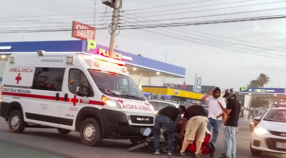 Un percance vial ocurrido la tarde de este miércoles en el sector oriente de Delicias dejó como saldo un motociclista lesionado, luego de que fuera impactado por una ambulancia de la Cruz Roja Mexicana delegación Camargo, cuando ambos vehículos coincidieron en el cruce de tres vialidades.