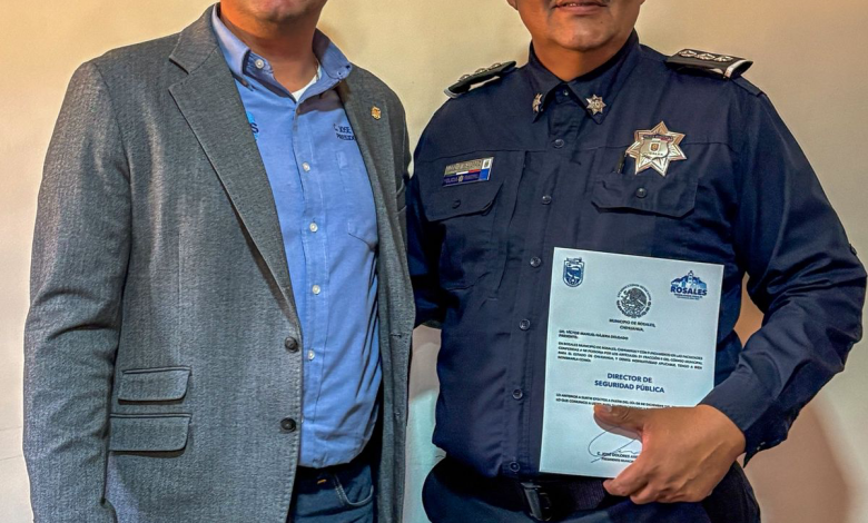Rosales.- El H. Ayuntamiento de Rosales informó a la ciudadanía que, durante la sesión extraordinaria de Cabildo celebrada el día de ayer por la tarde, se llevó a cabo el proceso de selección para la titularidad de la Dirección de Seguridad Pública Municipal, resultando electo el Lic. Víctor Manuel Nájera Delgado.