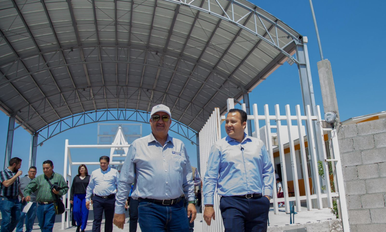 Con un emotivo acto ante alumnas, alumnos, personal docente y padres de familia, el secretario de Educación y Deporte del Estado, Hugo Francisco Gutiérrez Dávila, y el presidente municipal Jesús Valenciano García encabezaron la entrega oficial de la techumbre metálica en la Primaria Héroes de la Revolución, ubicada en la colonia Revolución.