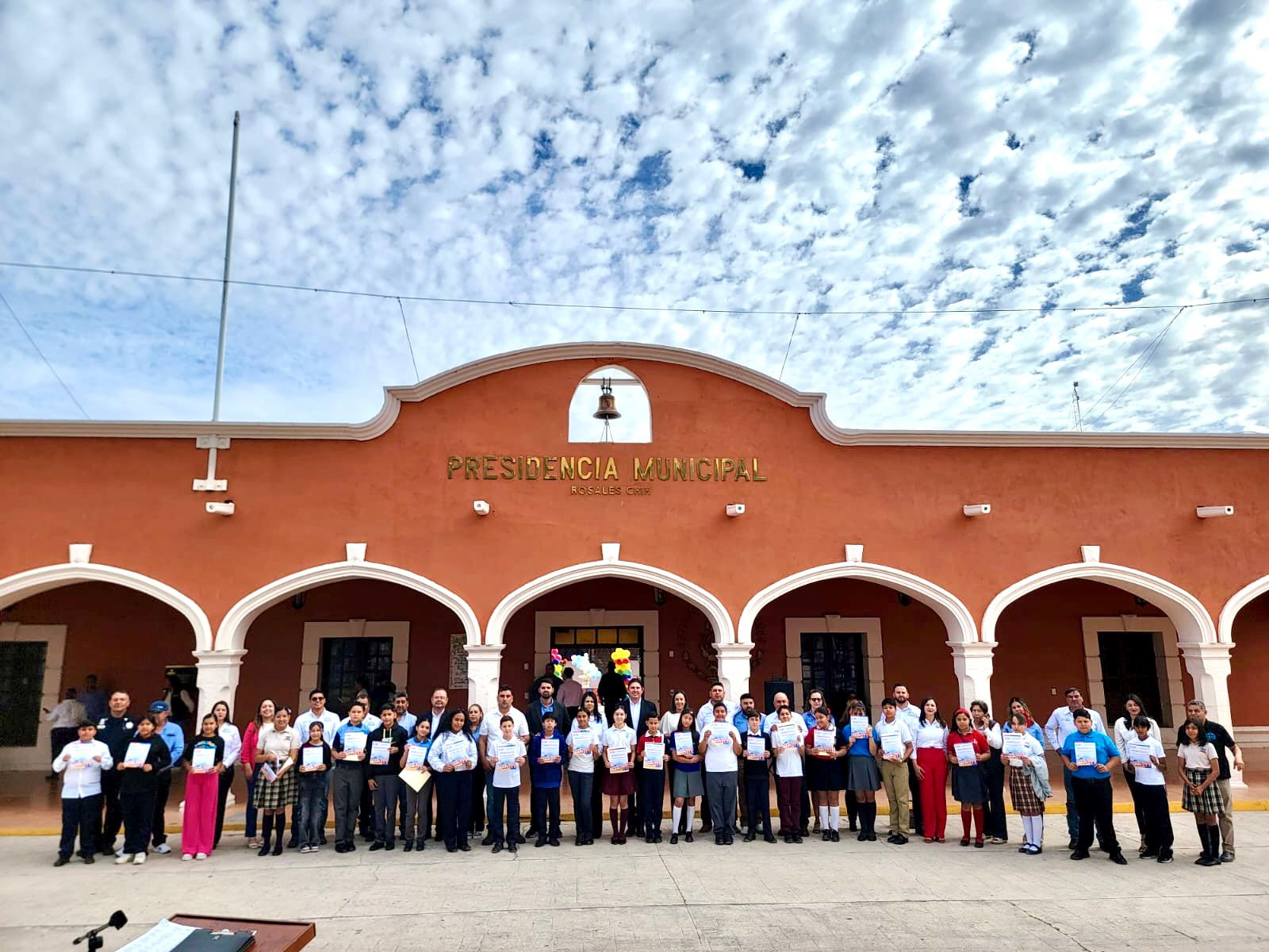 Rosales.- Alexa Esparza Rodríguez alumna de la Escuela Primero de Mayo ubicada en la comunidad de Congregación Ortiz y Jayden Iván Chavira Soto alumno de la Escuela Primaria Niños Héroes 2692 instalada en cabecera municipal, se desempeñaron este lunes 27 de abril como alcaldesa y alcalde respectivamente para festejar el día de las infancias