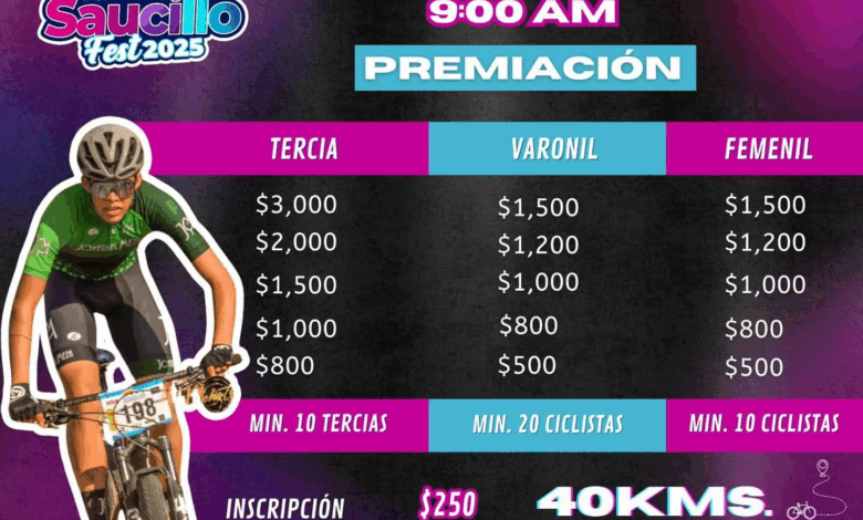 La competencia, que promete ser una de las más destacadas del festival, contará con un recorrido de 40 kilómetros y categorías para equipos (tercias), rama varonil y femenil. Se premiarán los primeros cinco lugares de cada categoría, con bolsas que van desde los $500 hasta los $3,000 pesos, según la posición y la modalidad.