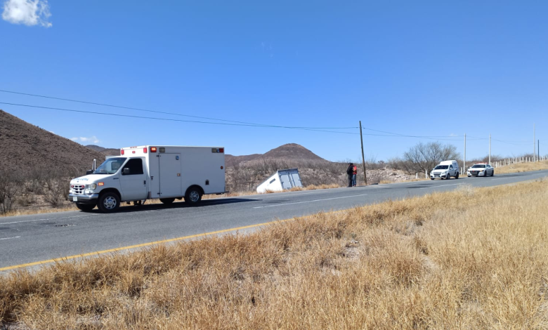 Un camión con caja refrigerante que circulaba sobre la carretera federal, sufrió una aparatosa salida de camino y se precipitó hacia uno de sus costados, quedando a punto de caer a un desnivel, sin embargo, el vehículo quedó atorado en el cerco de alambre de púas, con severos daños materiales en su parte frontal.